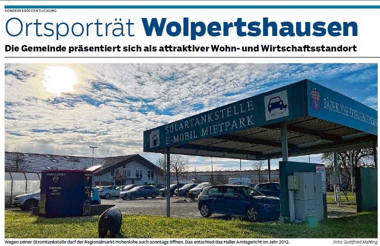 Der neue Regionalmarkt ist auch in den Energielehrpfad der ökologischen Modellgemeinde Wolpertshausen eingebunden, denn zwei lichtgeführte Photovoltaik-Pylone auf dem Parkplatz sorgen für 12 KWh Solarstrom, die Beheizung des Marktzentrums erfolgt ausschließlich mit Abwärme aus dem Blockheizkraftwerk der nahegelegenen Biogasanlage, welche von den örtlichen Landwirten betrieben wird.